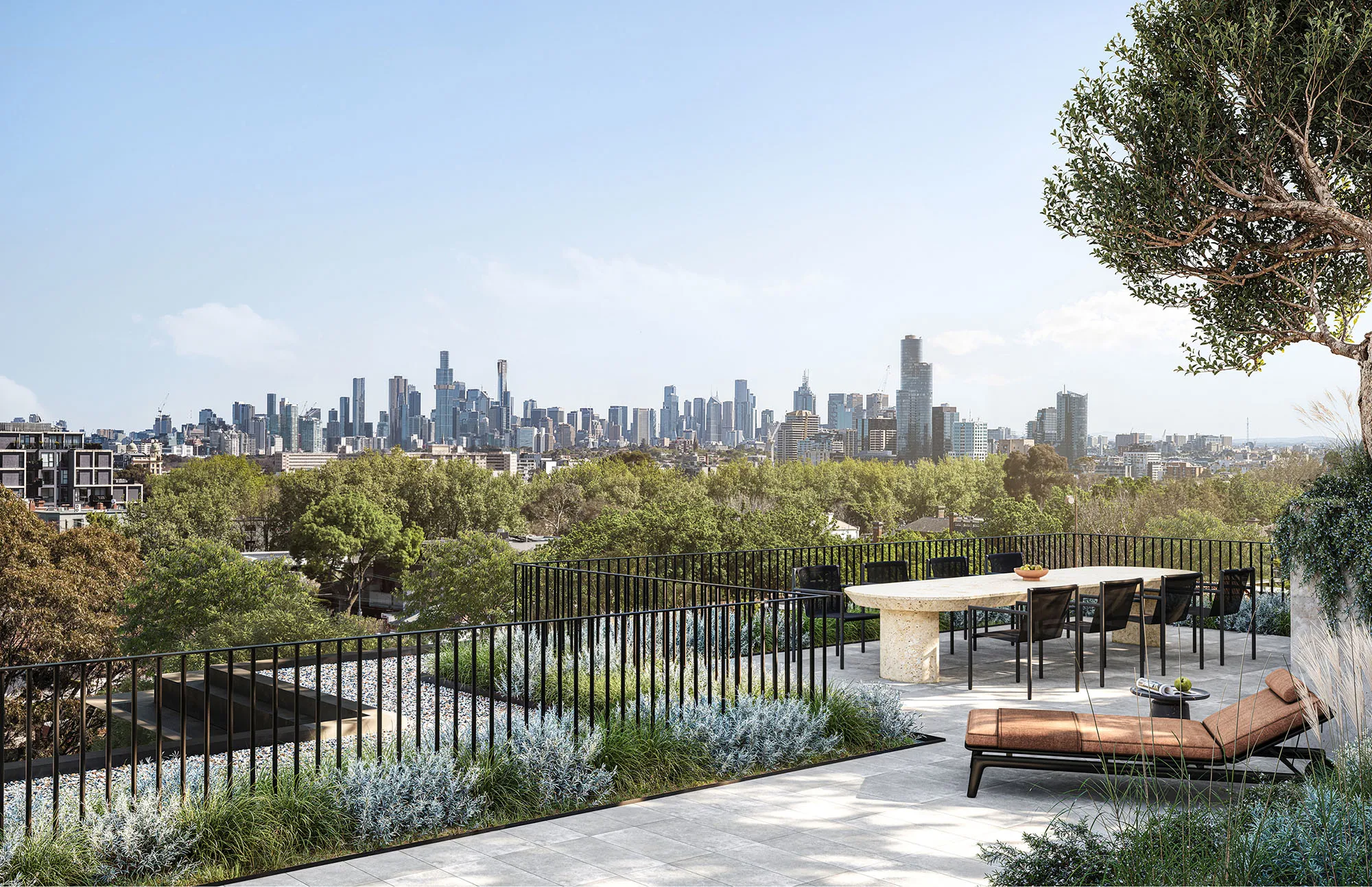 Many apartments look out to the large, heritage-listed tree, or embrace verdant vistas. Light and shadows dance as the dappled morning sun filter through the leafy canopies. On the upper levels, residences enjoy spectacular views of Melbourne. The windows are part of that system as they frame the views of not only the city, but also the surrounding treetops. Extensive rooftop terraces also offer views of the city and Port Phillip Bay.